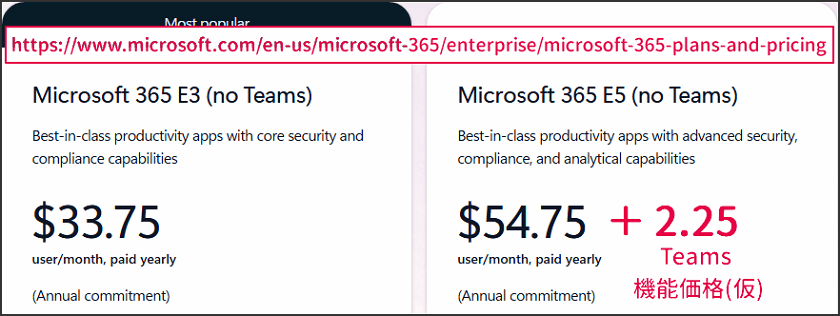② 今後は Teams 無しがオプション扱いになりそうなんですけど、シッカリと表記して顧客の選択に任せますよって意思表示を出しています。