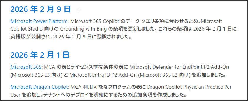 Microsoft Copilot Studioの「Grounding with Bing Terms」が更新され、Microsoft 365 Copilot Data Query Termsとの整合性が図られました。