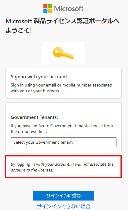 現在 [CSP] 契約では、この MAK 用のプロダクトキーしか提供されないようでした。